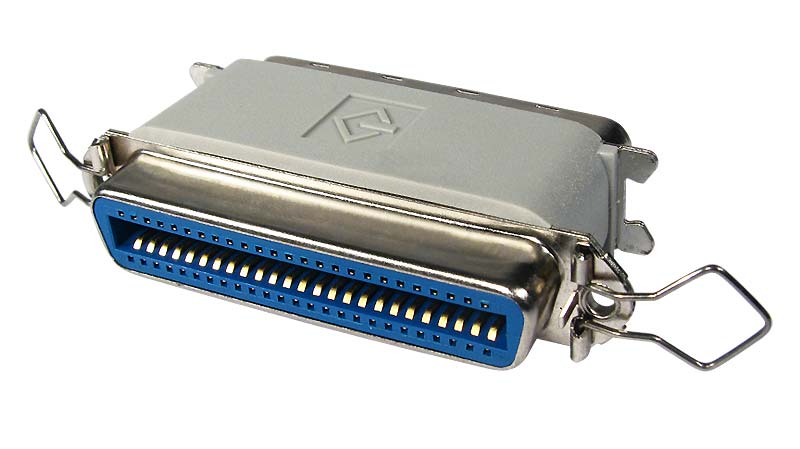 Terminador passivo SCSI CN50 macho a CN50 femêa que ajuda a estabilizar a corrente no cabo de ligação de forma passiva. |